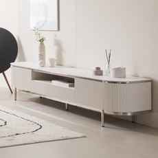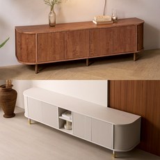밀라노 1800 2100 라운드 템바보드 높은거실장 티비다이 tv선반 시리즈, 03.밀라노2100 크림화이트