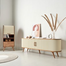 룸핏 레코드 원목 라운드 티비 다이 거실장 슬라이드 템바보드 고무나무 콘솔 65인치 75인치 TV 티브이 장 선반 받침대 장식장 수납장 정리장 오피스 사무실 1200 1800, 아이보리