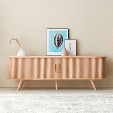 라온퍼니쳐 아바라 템바보드 슬라이딩 고무나무 1800 거실장 방문설치, 내츄럴