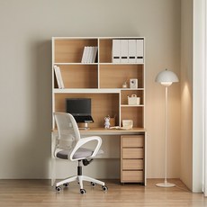 동서가구 리빙스 LED 1200 정면 책상 책장 세트 방문설치, 크림화이트