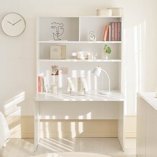 신학기 중학생책상 책장 통합형 컴퓨터 책상 현대 미니멀리스트 가정 학생, 120cm더블레이어화이트프레임+화이트파인우드